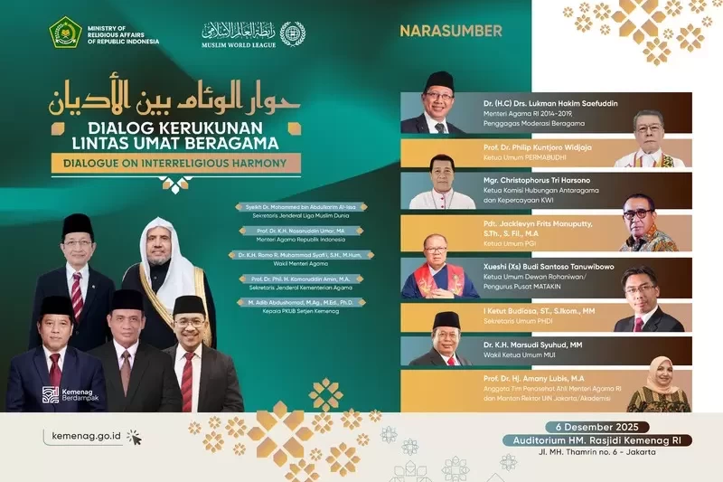 Kabar Baru, Jakarta — Kementerian Agama memastikan Menteri Agama Prof. Nasaruddin Umar akan hadir sekaligus membuka Dialog Kerukunan Lintas Agama yang digelar pada 6 Desember di Auditorium HM Rasjidi, Jakarta. Sekretaris Jenderal Muslim World League, Syeikh Mohammed bin Abdulkarim Al Issa, juga dijadwalkan hadir untuk menyampaikan pandangan global mengenai peran agama dalam membangun peradaban damai dan relasi harmonis antara manusia dan alam.